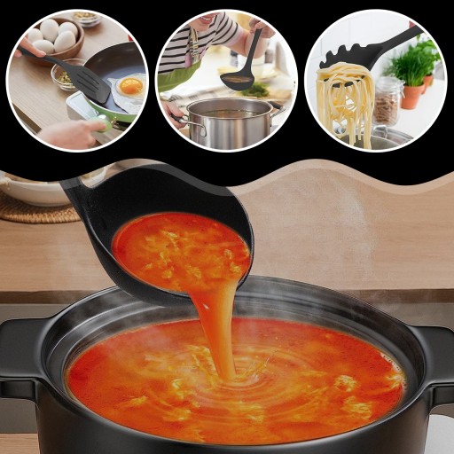 ✔️Uniwersalność W Kuchennych Zastosowaniach✔️Te przybory są tak wszechstronne, jak Twoje kulinarny wybór. Od przygotowywania zupy, poprzez delikatne mieszanie, aż po wyjmowanie odcedzonej żywności - każda łyżka, chochla i łopatka spełnia swoje zadanie. Dzięki nim, nie tylko przygotowujesz posiłki, ale także rozwijasz swoje umiejętności kulinarne.