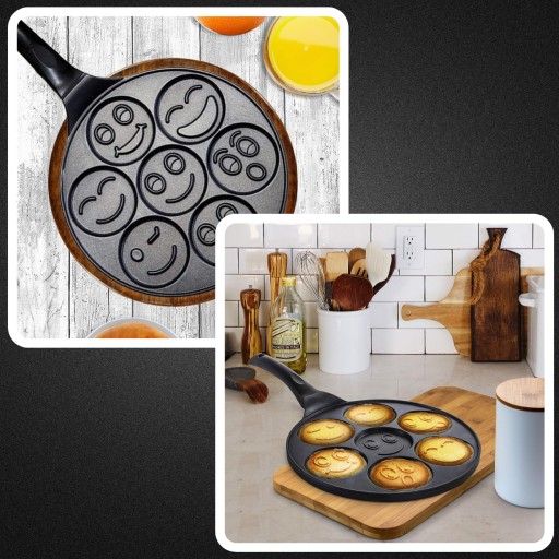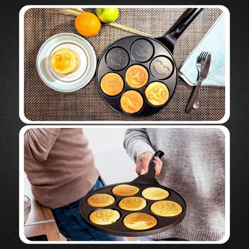 ✅Wzornictwo pełne uśmiechów: Wzory umieszczone na patelni są unikatowe i różnorodne, każdy z nich to inna urocza emotka. Nie tylko dzieci, ale także dorośli, będą zachwyceni tym pomysłem.