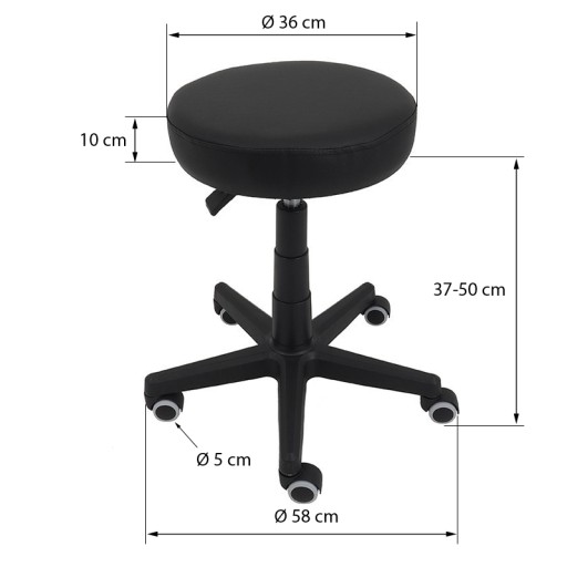 klasyczny taboret obrotowy, który idealnie sprawdzi się w gabinetach lekarskich, salonach fryzjerskich, aptekach, laboratoriach, sklepach, kioskach i do pracy przy maszynach.