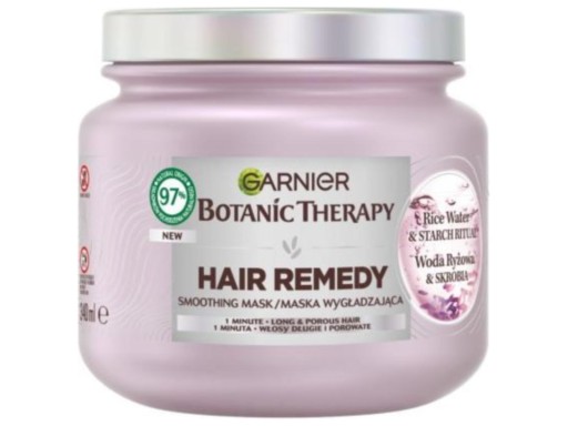 Włosy w fazie wzrostu są narażone na liczne czynniki zewnętrzne, które uszkadzają ich włókna. Łuski włosów są otwarte, przez co włosy stają się matowe i szorstkie. Nowa gama Garnier Botanic Therapy do długich i porowatych włosów wzbogacona o wodę ryżową i skrobię zatrzymuje wilgoć w celu natychmiastowego nawilżenia włosów. Włókna stają się wygładzone, a łuski uszczelnione, dzięki czemu doskonale odbijają światło. Rezultat: intensywny blask i gładkość przez 72 godziny*. Maska daje prawdziwie zmysłowe doświadczenie, zapewniające natychmiastowy relaks. Nałóż obficie na całą długość włosów, odczekaj minutę i spłucz! Formuła oparta na technologii Green Science, zawierająca szereg składników aktywnych w 97% pochodzenia naturalnego, ma działanie naprawcze i odżywcze, jednocześnie zapewniając uczucie lekkości. Bogata i kremowa konsystencja łatwo się nakłada i spłukuje: zniszczone włosy są zregenerowane bez efektu obciążania.