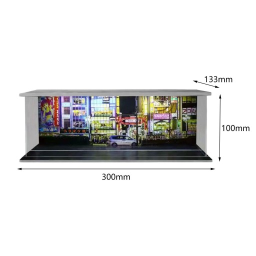 [Cechy]: Gablota LED z symulacją parkingu w skali 1/64 z osłoną pyłoszczelną i wbudowanym światłem LED. Każdy motyw tła to scena uliczna miasta. Ładowanie USB