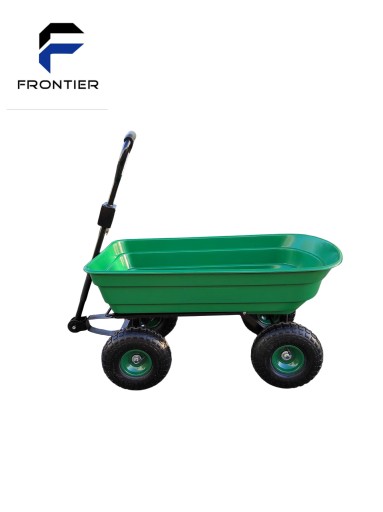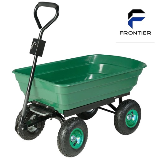Wózek ogrodowy marki Frontier z funkcja przechylania, sprawdzi się w każdym ogrodzie, gospodarstwie lub na placu budowy. Wytrzymuje obciążenie do 300 kg lub 75 l odpadów ogrodowych, ziemi, piasku lub wody. Konstrukcja wózka składa się z trwałej stalowej ramy i skrzyni wykonanej z odpornego na uderzenia tworzywa polipropylenowego. Sprawdzi się w każdym terenie dzięki dużym kółkom pneumatycznym. Otwarta skrzynia umożliwia szybki załadunek, a przechylanie wózka daje możliwość łatwego i bezpiecznego rozładunku.