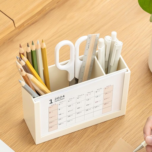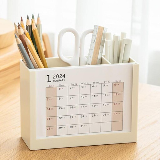 [Trwały materiał]: Ten uchwyt na długopis z kalendarzem biurkowym na rok 2024 jest wykonany z materiału PS i pogrubionego papieru, a jego kreatywny kalendarz na biurko może służyć również jako wielofunkcyjne pudełko do przechowywania.