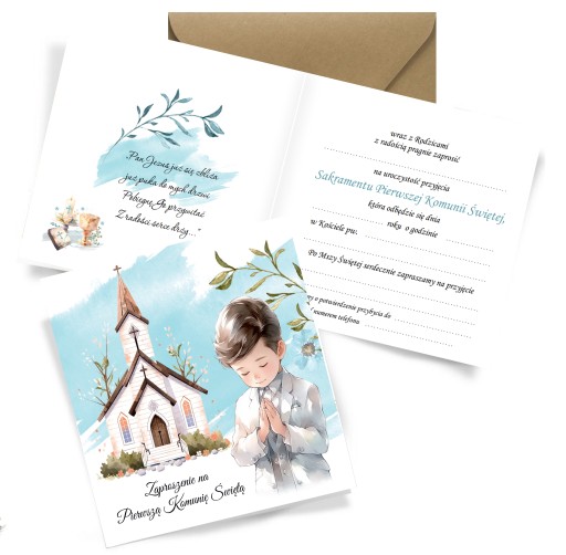 Приглашения на первое причастие для мальчика или девочки, БОЛЬШИЕ, 15 см + КОНВЕРТ
