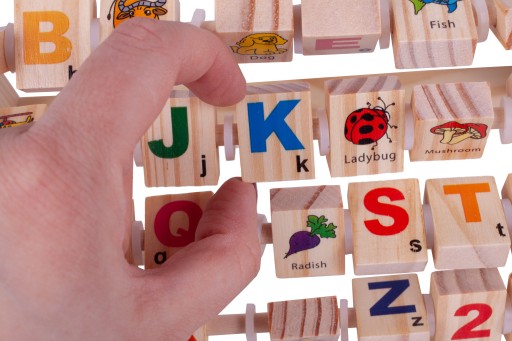 III. Liczby, litery i obrazki na drewnianych klockach.