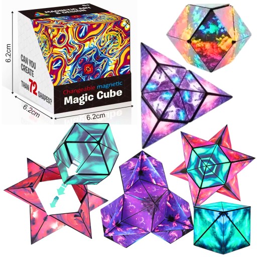 - Wyposażona w 36 magnesów, kostka oferuje 72 różnych kombinacji kształtów. To układanka, która nigdy się nie nudzi, dostarczając ciągłych wyzwań i radości z tworzenia nowych form.