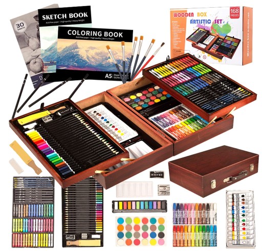 - ✅Bogactwo materiałów: 48 kredki, 24 pastele olejne, 24 kolorowe ołówki, 12 farb olejnych, 36 akwareli i wiele więcej.
