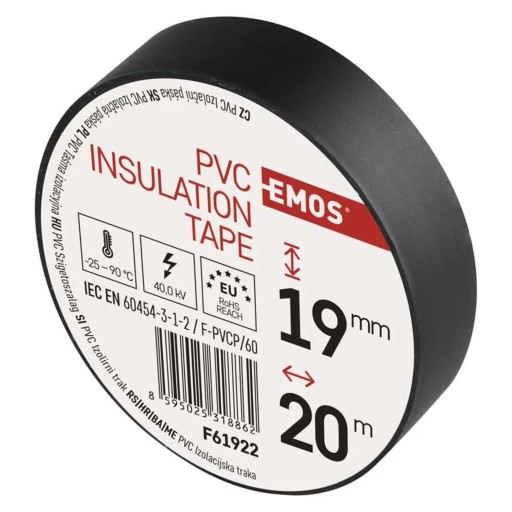 ✅ TAŚMA IZOLACYJNA 19 mm x 20 m CZARNA PCV/PVC EMOS