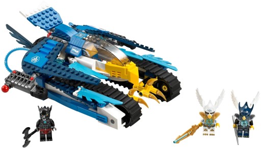 W magicznym świecie CHIMA niesamowici zwierzęcy wojownicy walczą o unikalne źródło energii zwane CHI. Kiedyś plemię Lwów rozdzielało je sprawiedliwie między wszystkie plemiona, lecz teraz plemię Krokodyli pragnie zagarnąć je tylko dla siebie! Już wkrótce wybuchnie heroiczna walka między dobrem a złem o kontrolę nad CHI. Przygotuj się na … wyzwolenie mocy! Pojazd ma potężne, gumowe gąsienice, wielkie, rozkładane skrzydła, podwójną wyrzutnię orlich rakiet, przednie szpony do oczyszczania przejścia i niezwykły system katapultowy! Wielki wojownik Equila i specjalista od uzbrojenia Eglor są w swoim żywiole, ale czy uda im się obronić CHI używane, jako źródło zasilania przed mistrzem łowieckim Wilhurtem? Upewnij się, że ten podstępny wilk wróci do swojej jaskini z pustymi łapami!