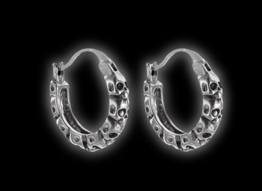 Kolczyki Kółka Czaszki, kolor srebrny, stal nierdzewna, stop, 2 sztuki