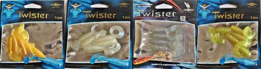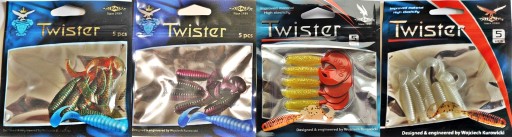 TWISTERY MIKADO WYKONANE Z WYJĄTKOWO MOCNEGO TWORZYWA O SPECJALNIE PRZECIĄŻONYM , KARBOWANYM KORPUSIE ORAZ POWIĘKSZONEJ POWIERZCHNI OGONKA. NAPRĘŻENIA JAKIE POWSTAJĄ POMIĘDZY PRZECIĄŻONYM KORPUSEM A BARDZO DUŻYM OGONKIEM POWODUJĄ GENEROWANIE NIEZWYKLE SILNEJ FALI HYDROAKUSTYCZNEJ WYTWARZANEJ PRZEZ WIBRACJE OGONKA.