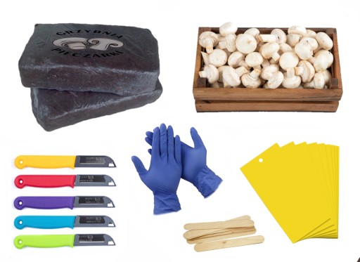 Zestaw zawiera wszystko, czego potrzebujesz, by rozpocząć uprawę pieczarek w domu: