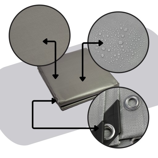 ✅ Wodoodporny materiał sprawia, że podczas deszczu czy śniegu nie przecieknie on na przedmioty, które zostały okryte plandeką.