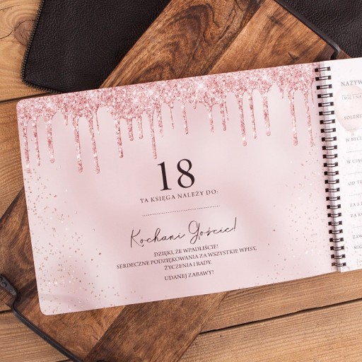 KSIĘGA gości na 18 urodziny z ankietami Glamour Glitter MEGA HIT