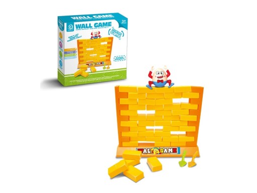 W zestawie znajdziemy Pana Jajko, 2 łopatki, cegiełki, 2 stojaki i podstawkę do stworzenia ściany. Gra polega na ułożeniu ściany z cegieł.