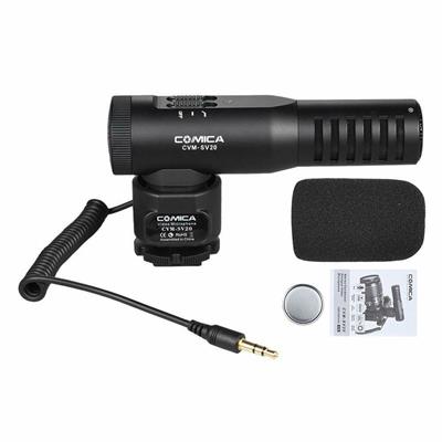 Zaprojektowany dla twórców wideo, stereofoniczny mikrofon kierunkowy Comica Audio CVM-SV20 do montażu na aparacie oferuje kompaktowe, ekonomiczne rozwiązanie do rejestracji dźwięku. Posiada dwie niezależne kapsuły stereo z szerokim obrazowaniem przestrzennym, idealne do występów muzycznych na żywo, dźwięków natury, wydarzeń sportowych.