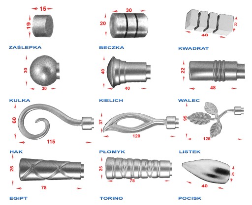 - Zakończenia karniszy - 2 szt (model do wyboru - foto niżej)