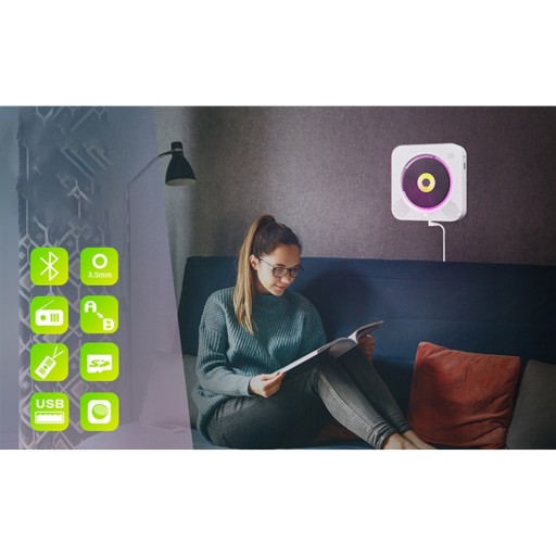 - Domowy odtwarzacz CD obsługuje formaty audio CD, CD-R, CD-RW, MP3 i WMA do odtwarzania płyt CD, a także może odtwarzać przez Bluetooth, dyski flash USB, karty micro SD i AUX.