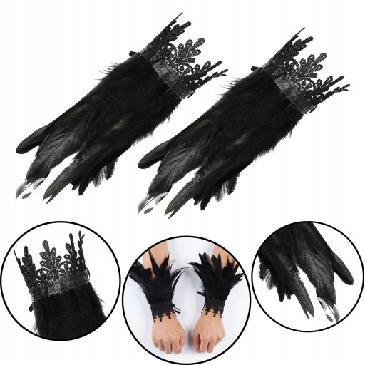 Gothic Feather Choker Wrap Peleryna Masquerade Party Szal Shrug Faux Opaska na nadgarstek