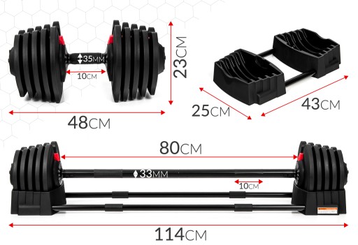 - Model: Hantla treningowa 2w1 z systemem regulacji 40kg