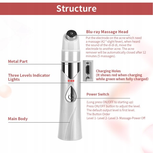 42° ciepła, aby promować parowanie skóry tam, gdzie trądzik jest dopuszczalny, usuwając trądzik z korzenia, aby utrzymać czystą skórę, zapobiegać rozmnażaniu się trądziku.