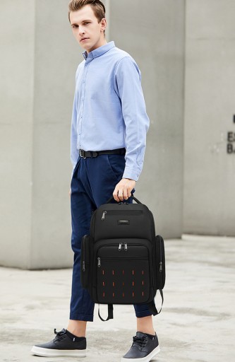 Dwukomorowy plecak na laptopa marki Coolbell o symbolu CB-8275 został wykonany z wytrzymałego i wodoodpornego materiału – nylonu. W komorze z tyłu plecaka znajduje się miękka kieszeń na laptop w rozmiarze do 17,3", która jest wyłożona specjalnymi, antywstrząsowymi wypustkami zapewniającymi amortyzację i bezpieczeństwo przenoszonego sprzętu, oraz kieszeń na tablet do 10, obie zapinane na elastyczny pasek z rzepem. Środkowa komora jest duża i pojemna, przeznaczona na zapakowanie ubrań i większych rzeczy, które można spiąć elastycznymi paskami. Umieszczono tutaj również dwie siatkowe kieszenie na podręczne rzeczy. Tą komorę również można otworzyć na płasko, jak walizkę, aby ułatwić dostęp do zawartości. Z przodu plecaka znajdują się dwie większe kieszenie, w tym jedna to wodoodporna kieszeń na kosmetyki, oraz dwie mniejsze kieszonki z wodoodpornymi zamkami. Po bokach plecaka umieszczono wąskie kieszenie na parasolkę lub napój zapinane na zamek. Profilowane szelki i tył plecaka są wyłożone sprężystymi gąbkami, aby plecak był wygodny podczas noszenia. Na jednej z szelek umieszczono elastyczny pasek do zahaczenia okularów. Do szelek przymocowany jest pas piersiowy, aby lepiej rozłożyć ciężar plecaka przy dużym obciążeniu. Z tyłu plecaka znajduje się nylonowy pas, dzięki któremu można założyć plecak na rączkę torby lotniczej oraz antykradzieżowa kieszeń na portfel lub telefon z zamkiem przebiegającym w pionie. Plecak posiada dwa uchwyty, dzięki czemu można go wygodnie przenosić w ręce jak torbę oraz zawiesić na wieszaku. Ze względu na swoją funkcjonalność plecak Coolbell CB-8275 doskonale sprawdzi się w szkole, w pracy, jak i na krótkim wyjeździe np. służbowym.