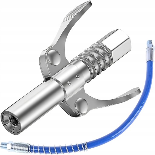 - Kompatybilność: Przystawka do smarownicy jest zgodna z przyłączem 1/8" NPT, co oznacza, że pasuje do wszystkich baterii smarowniczych o tym standardowym rozmiarze, zarówno pneumatycznych, ręcznych, jak i złączek typu Zerk. Jest również kompatybilna z smarownicami DIN i SAE. Dodatkowo, ulepszona szczęka utrzymuje wysokie ciśnienie bez deformacji.