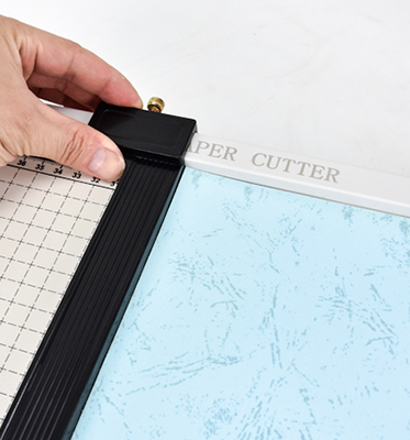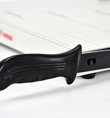 - ▶️ Ruchomy ogranicznik formatu umożliwia dokładne przygotowanie dokumentów do cięcia.