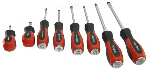 Zestaw wkrętaków wykonany z wysokogatunkowej stali CrV 6150.
