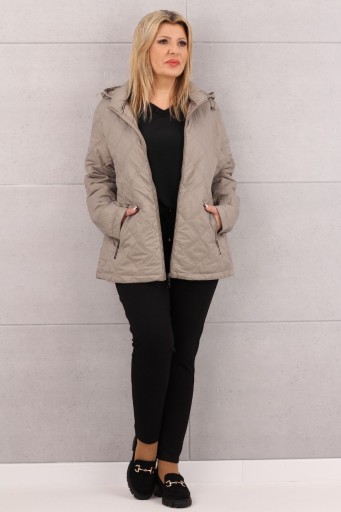 Stylowa kurtka z kapturem, doskonale łącząca komfort, modny design i ochronę w okresach przejściowych między sezonami. Precyzyjny krój kurtki nie tylko zapewnia wygodę, ale również subtelnie wyszczupla i modeluje sylwetkę, nadając jej proporcje i elegancję. Kaptur stanowi dodatkową ochronę przed niekorzystnymi warunkami atmosferycznymi, takimi jak deszcz czy wiatr. Pikowanie nadaje jej nowoczesny wygląd, czyniąc ją idealnym wyborem na codzienne stylizacje.