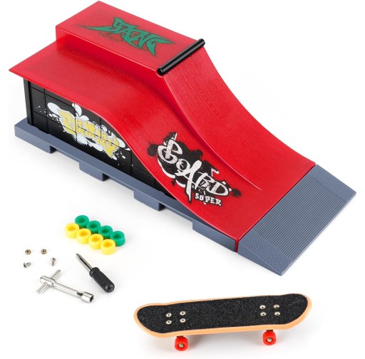 🛹 Zestaw ramp do deskorolki z palcami: Ten zestaw rampy do deskorolki zawiera 1 paczkę niezmontowanych elementów rampy do deskorolki, które należy samodzielnie zmontować. Zawiera również 1 mini deskorolkę i 1 zestaw akcesoriów, które można złożyć za pomocą narzędzi lub zapasowych kół, które można zbudować. Nie musisz kupować osobno mini deskorolki, zapasowych kółek i narzędzi.