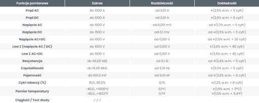 Przyrząd dedykowany jest do pomiaru prądu i napięcia DC w instalacjach fotowoltaicznych o napięciach 1500 V. Miernik umożliwia również precyzyjne pomiary za przemiennikami częstotliwości dzięki funkcji VFD.