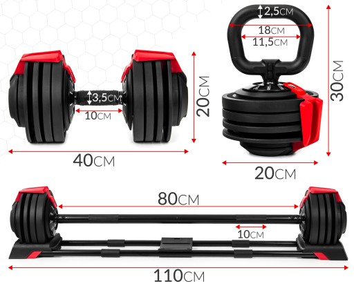 - Model: Hantla treningowa 3w1 z systemem regulacji 24kg