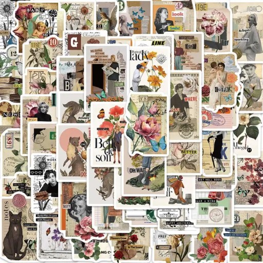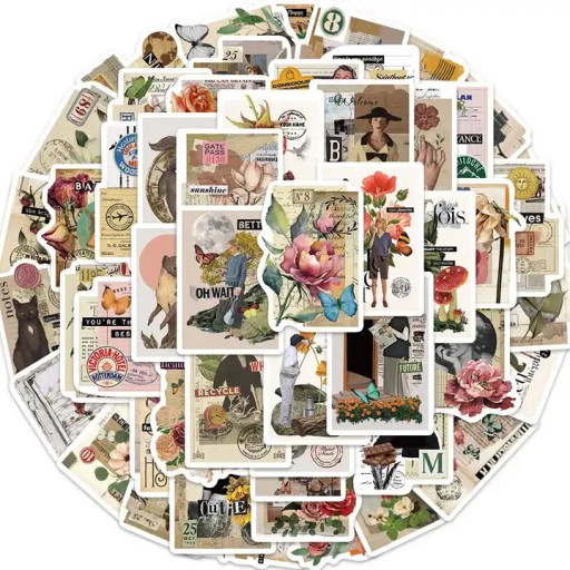 NAKLEJKI VINTAGE RETRO WODOODPORNE MIX WLEPY NA LAPTOPA 50 szt
