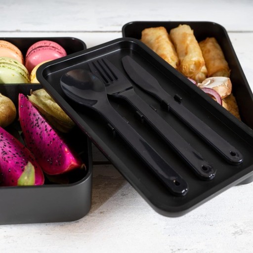 ✅ PRAKTYCZNE AKCESORIA: Separator do jedzenia zapobiega mieszaniu się smaków, a przechowywane wewnątrz pudełka sztućce są porządnie ułożone i gotowe do wielokrotnego użytku.