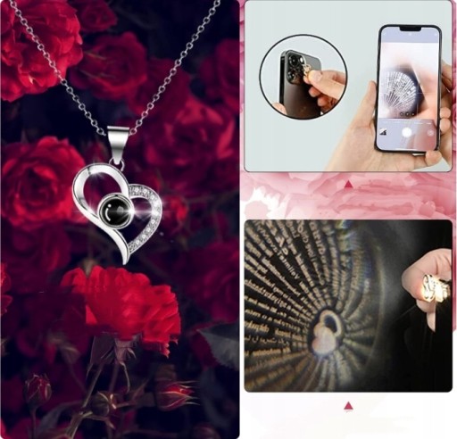 Odkryj niespodziankę ukrytą w 100 językach wyrażających "Kocham Cię" za pomocą naszego naszyjnika. Aby ujrzeć to wyjątkowe przesłanie, skorzystaj z jednej z dwóch prostych metod: