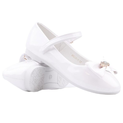 BIAŁE BALERINKI DZIEWCZĘCE NA KOMUNIE BUTY KOMUNIJNE NA RZEPY DO SZKOŁY