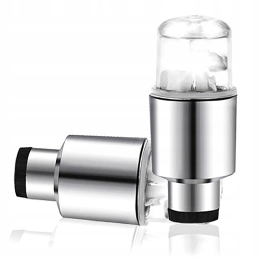 Zestaw dwóch tuningowych świecących nakładek na wentyl samochodowy, motocyklowy lub rowerowy. Wielokolorowa dioda RGB LED tworzy niesamowity efekt świetlny podczas jazdy. Bądź widoczny po zmroku!