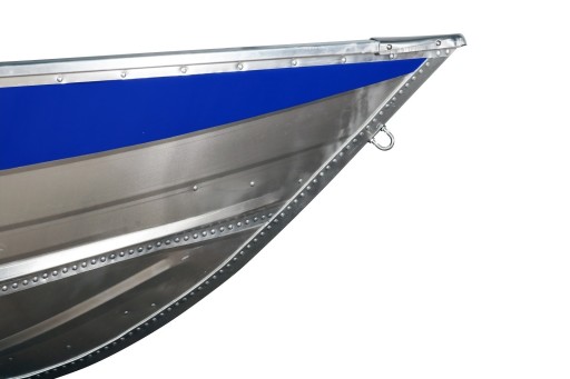 - Dno w kształcie litery „V”, wysokie burty i płaska rufa