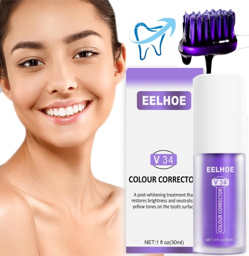 Pasta do wybielania zębów V34 Fioletowa Pasta do zębów z korektorem kolorów do wybielania zębów zawiera sorbitol, ksylitol, glicerynę i inne naturalne składniki, zapewnia kompleksową ochronę dziąseł i zębów i sprawia, że Twój oddech będzie świeższy.