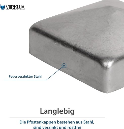 Ślepki do słupków firmy VIIRKUJA skutecznie chronią Twoje ogrodzenie lub drewniane słupki przed deszczem i innymi czynnikami atmosferycznymi. Dzięki wysokiej dokładności dopasowania i wstępnie wywierconym otworom, nakładki można prosto i szybko zamontować. Zaślepki dobrze nadają się również do dekoracji Twojego ogrodzenia dziękidekoracyjnej, ocynkowanej ogniowo powierzchni materiału.