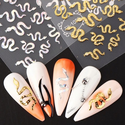 Samoprzylepne złote naklejki 3D na paznokcie - złote węże ⭐⭐⭐⭐⭐