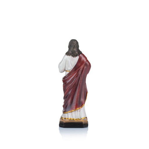Ręcznie malowana, wykonana z najwyższą dbałością o szczegóły, żywiczna figurka, przedstawiająca Chrystusa, wskazującego na swoje Przenajświętsze Serce.