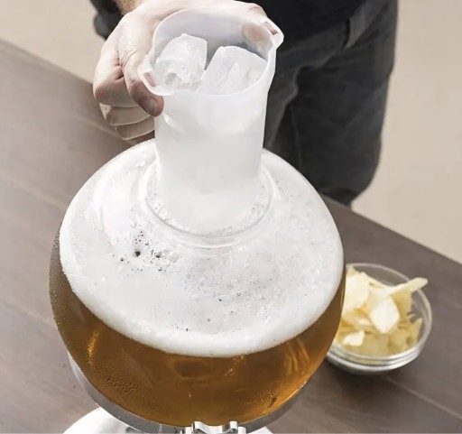Dodatek pojemnika na lód to kolejny atut tego wyjątkowego nalewaka. Włóż go i ciesz się zawsze schłodzonym napojem! Pojemnik na lód jest łatwo wkładany na "wcisk", co sprawia, że Twoje napoje są zawsze gotowe do podania w idealnej temperaturze.