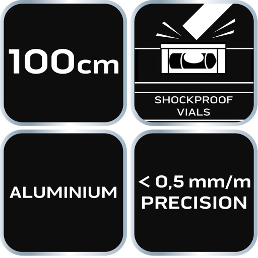 ⭐Poziomnica aluminiowa S 300, 3 libelle, 100 cm 71-134 marki NEO to wysokiej klasy przyrząd pomiary z wbudowanymi trzema libellami rurkowymi (45, 90 i 180 stopni), wykorzystującymi siłę grawitacji ziemskiej do wyznaczania poziomości lub pionowości płaszczyzn w budownictwie.