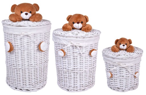 Komplet koszy wiklinowych z pluszowym misiem