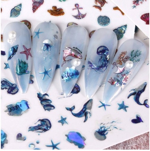 Samoprzylepne naklejki na paznokcie - morskie, meduzy, wieloryby, rozgwiazdy ⭐⭐⭐⭐⭐