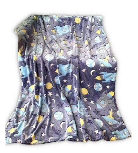CIEPŁY KOC FLUO ŚWIECĄCY W CIEMNOŚCI 150X200 RAKIETY KOSMOS