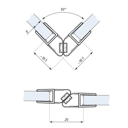 Uszczelka magnetyczna PMFEN-6-8 zaprojektowana z myślą o kabinach prysznicowych o grubości szkła 6-8 mm.