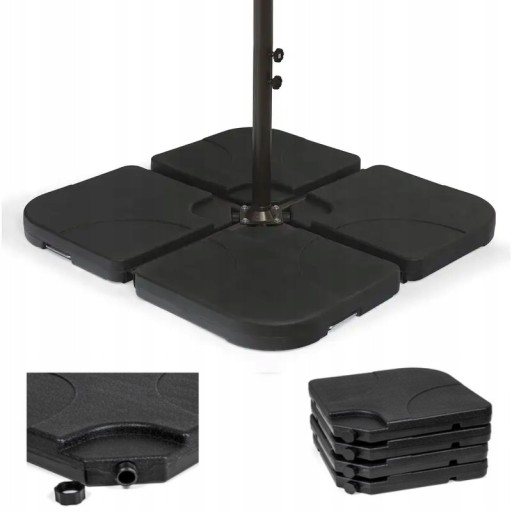 Bardzo przyjemna i łatwa możliwość napełniania podstawy wodą, pojemność obciążenia parasola to aż 60kg, dzięki czemu nie musimy się martwić o stabilność nawet bardzo dużych parasoli.